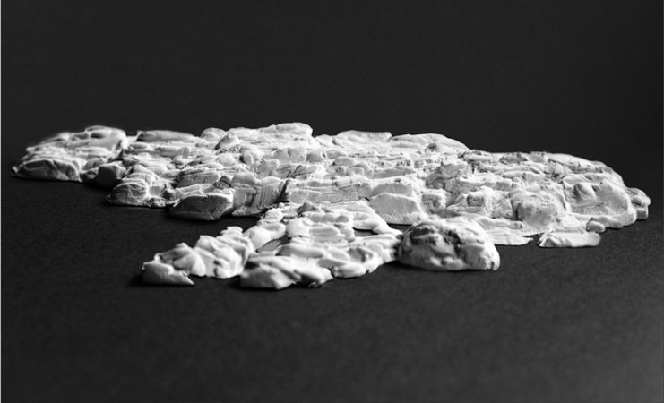 Clay, modeled; Casting: ceramic casting compound, pigment, 51 cm x 43 cm x 3,7 cm