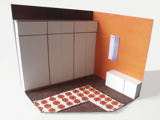 Cardboard, textiles, Styrodur, paint, paper, 45 cm x 60 cm x 40 cm