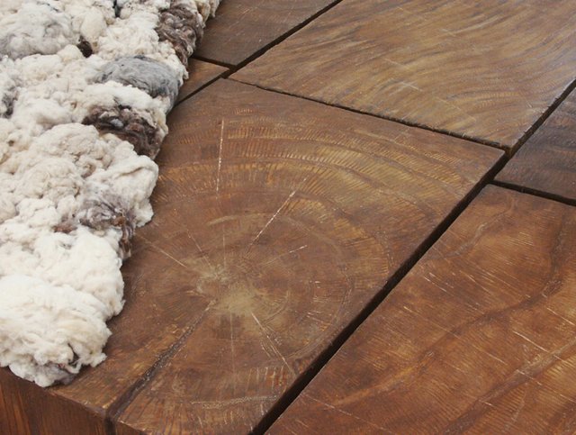 Processed plywood panels, virgin wool, 3,60 m x 3,20 m x 60 cm